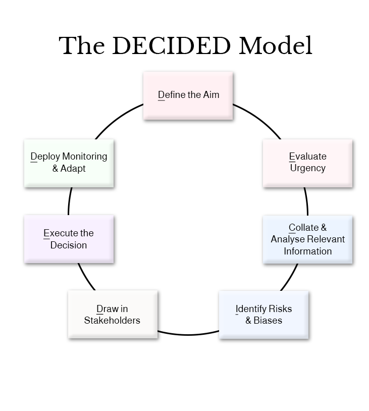 The DECIDED Model transforms decision-making from a daunting task into a confident, systematic process that offers actionable steps to enhance decision-making: